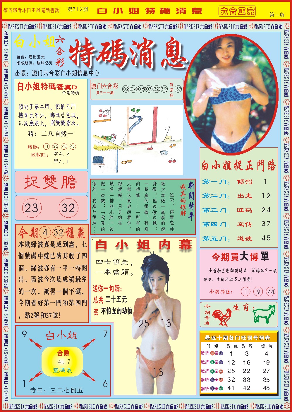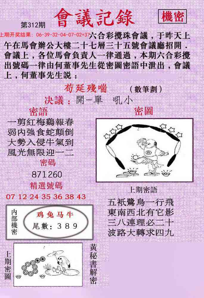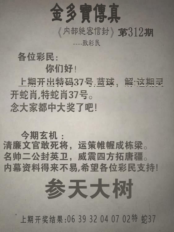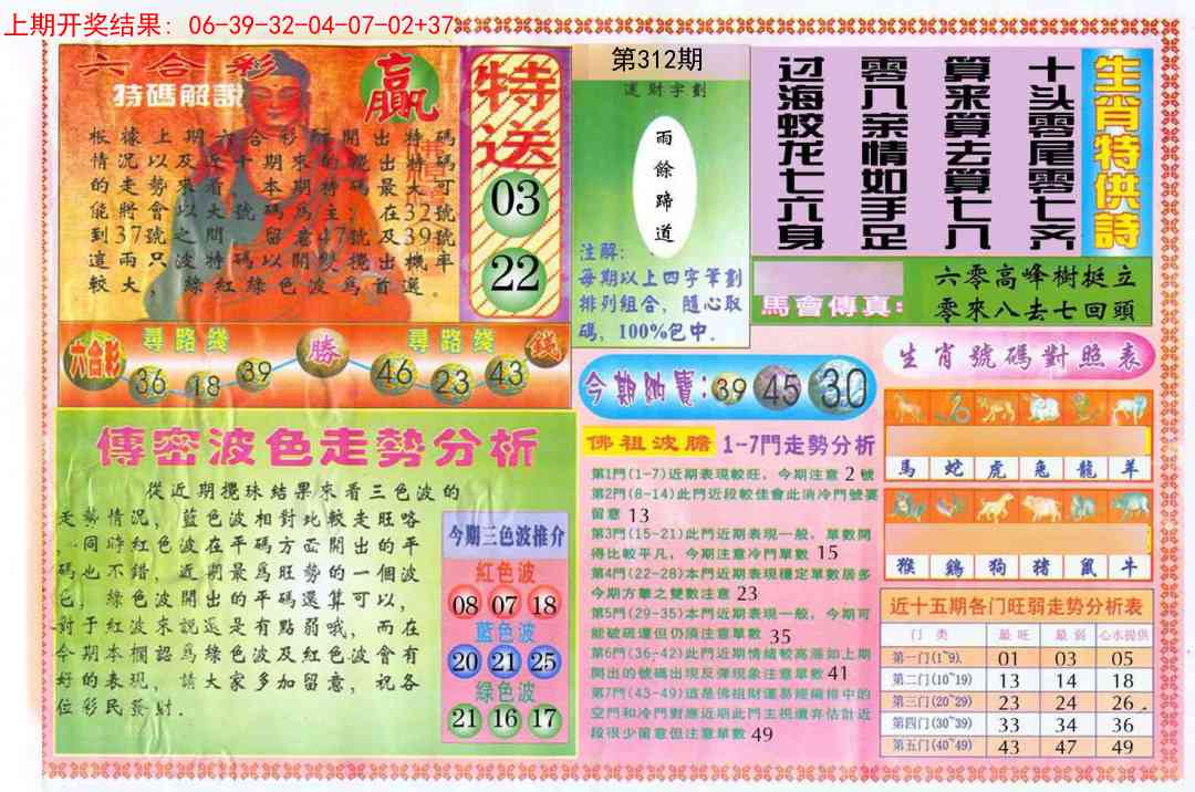 312期:【正版三中三】《3组3中3》内部传真√ 【正版三中三】