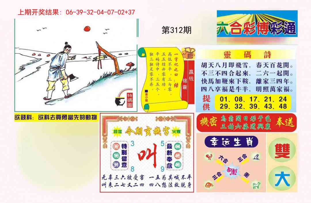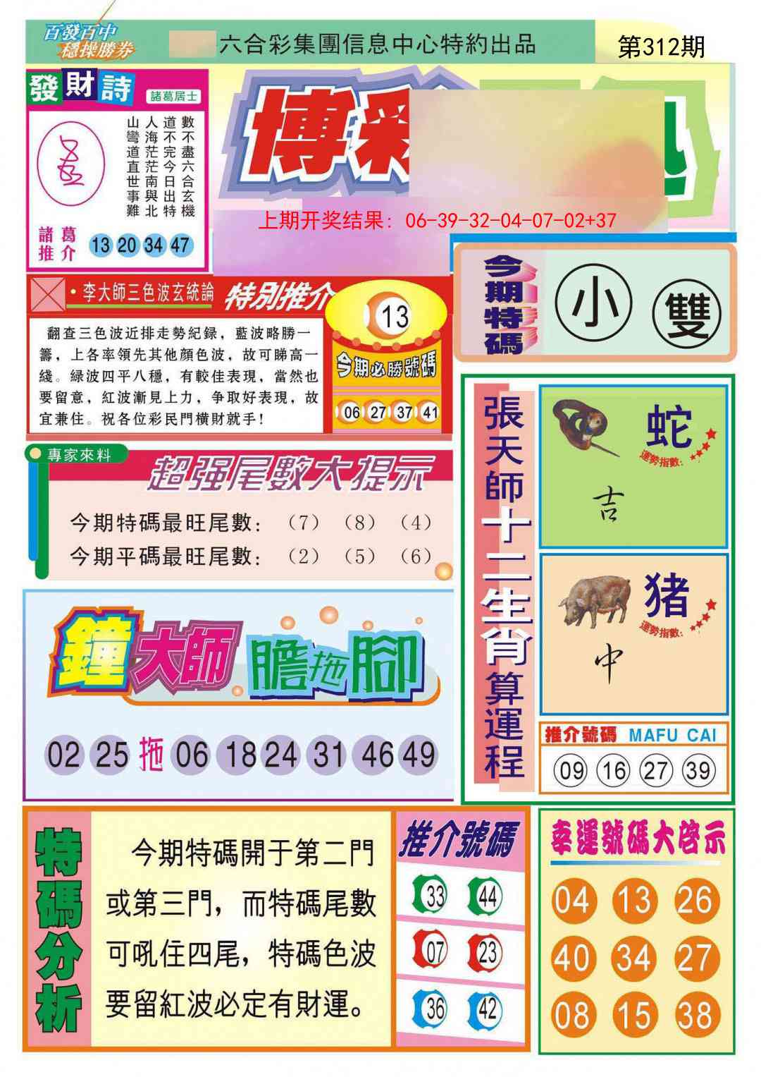 312期:《八方来财复式六码3中3》特邀高手√ 【八方来财】