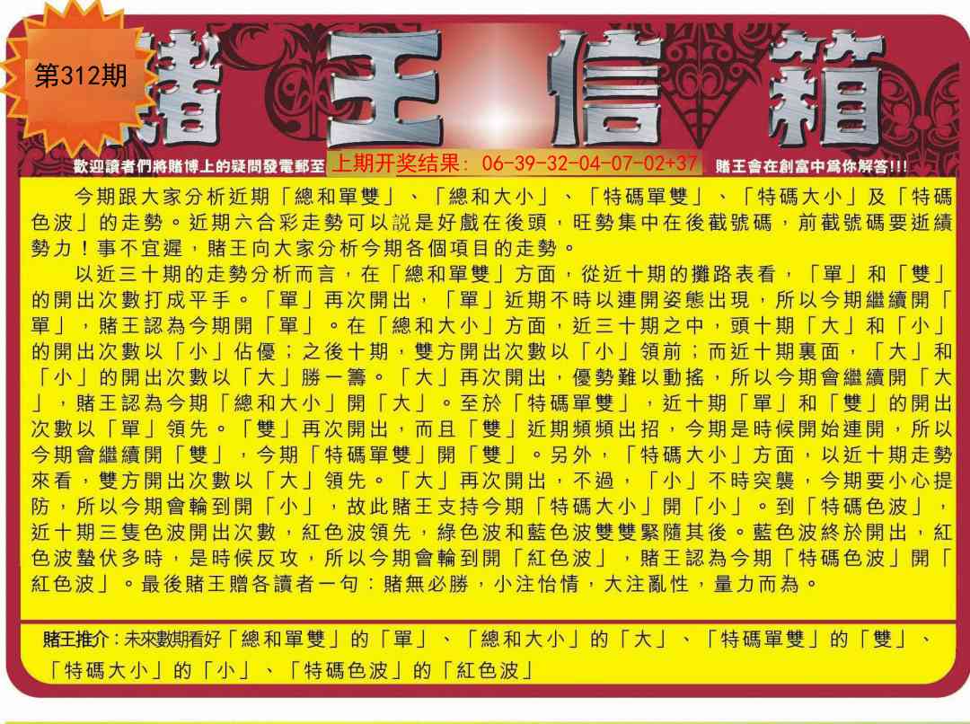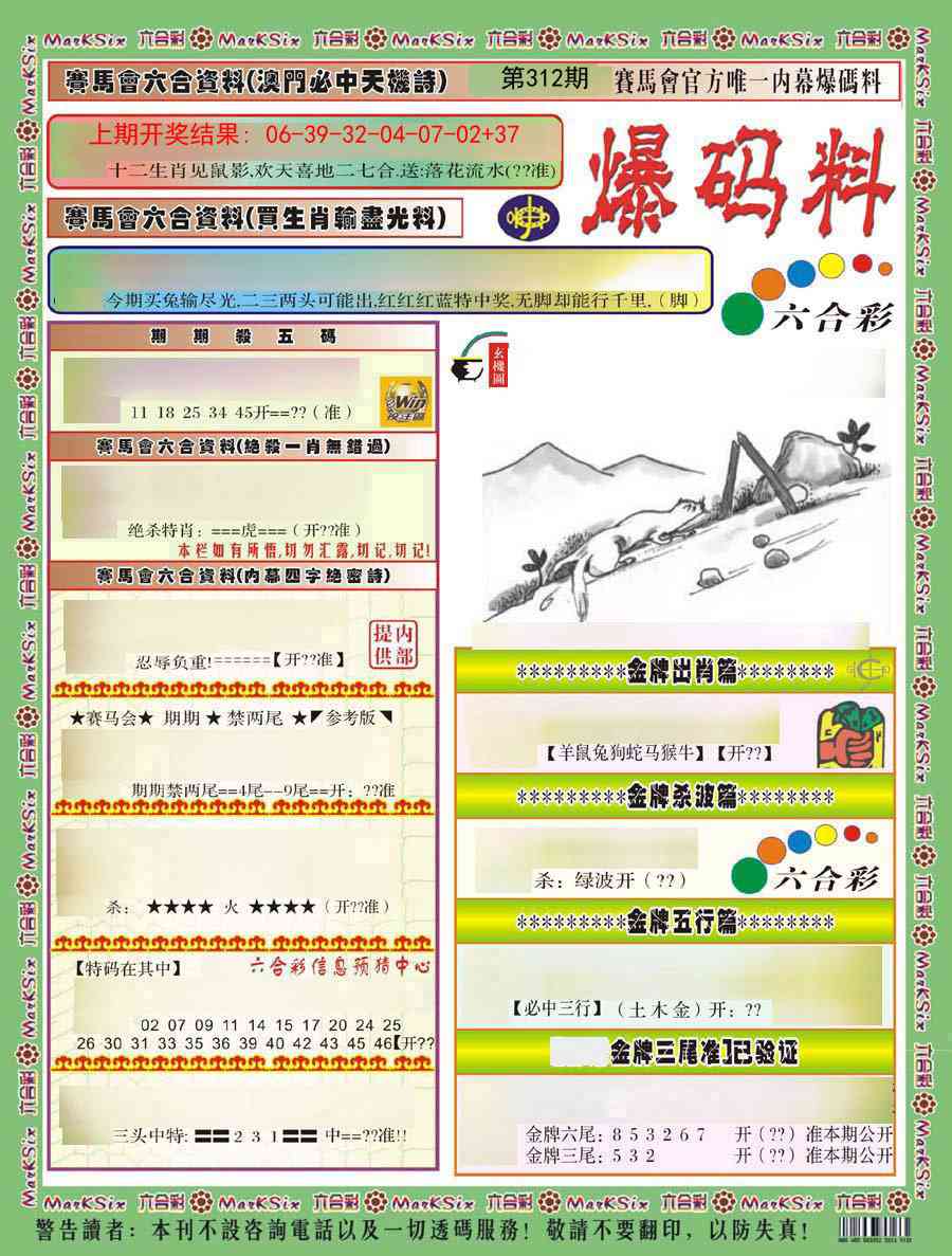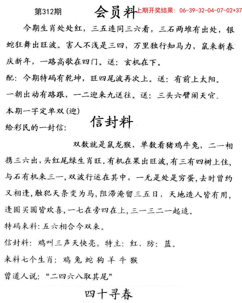 312期:《特邀高手》《来料九码》独家发表√ 【六点来料】