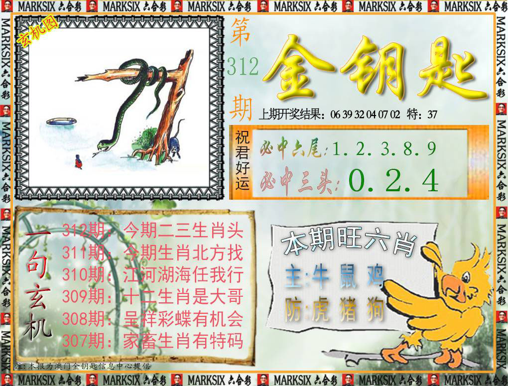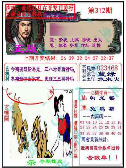 312期:【预测先知】《二肖中特》独家发表√ 【预测先知】